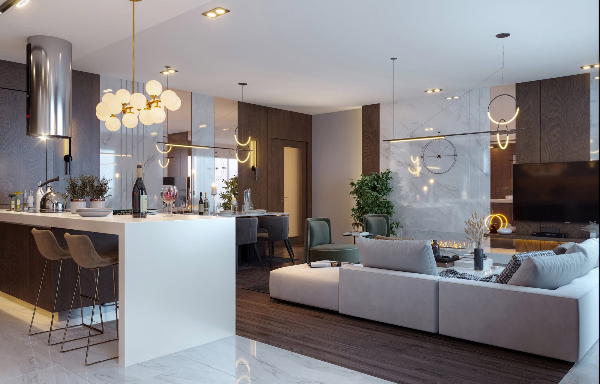 Tüm daireler anahtar teslim olarak sunulmakta olup, iç mekân tasarımları; kullanıcının zevkleri, günlük yaşam alışkanlıkları, konfor beklentileri doğrultusunda, profesyonel iç mimar eşliğinde şekillendirilmektedir.